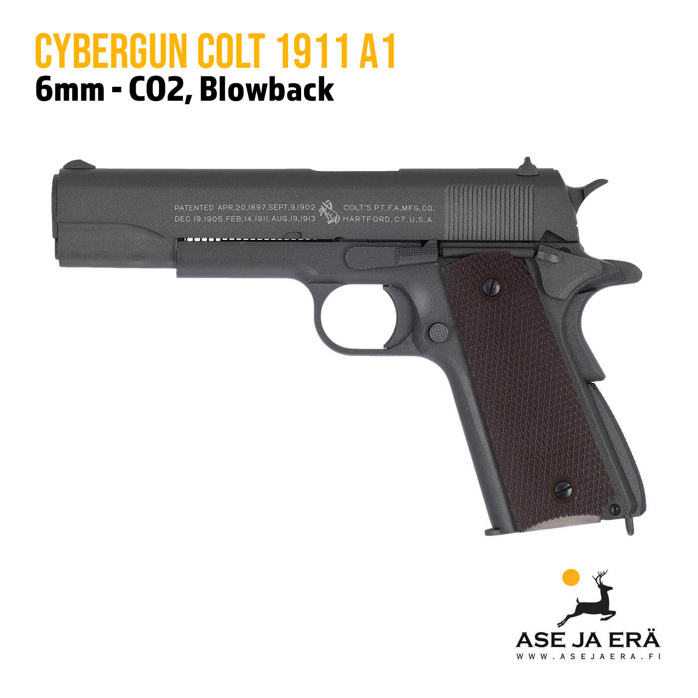 Cybergun Colt M1911 on metallirunkoinen, Blowback-toiminnolla varustettu tarkka lisensoitu airsoft replika alkuperäisestä aseesta. Täysmetallirunkoinen Cybergun M1911 vakuutaa niin jämeryydellään kuin viimeistelyllään. Aseen painon tuntee ja napakka blowback rekyyli tuo käyttöön realismia. Ase istuu tukevasti käteen ja luisti sekä varmistin ovat helposti käden ulottuvilla. Kuvioidut kahvalevyt tarjoaa hyvän pidon niin yhden, kuin kahden käden otteille. Esikuvan mukaisesti Cybergun M1911 pistoolista löytyy myös kahvavarmistin, joka estää aseen laukeaisemisen vahingossa. Ase ei laukea ellei sitä ei pidetä pistooliotteella.