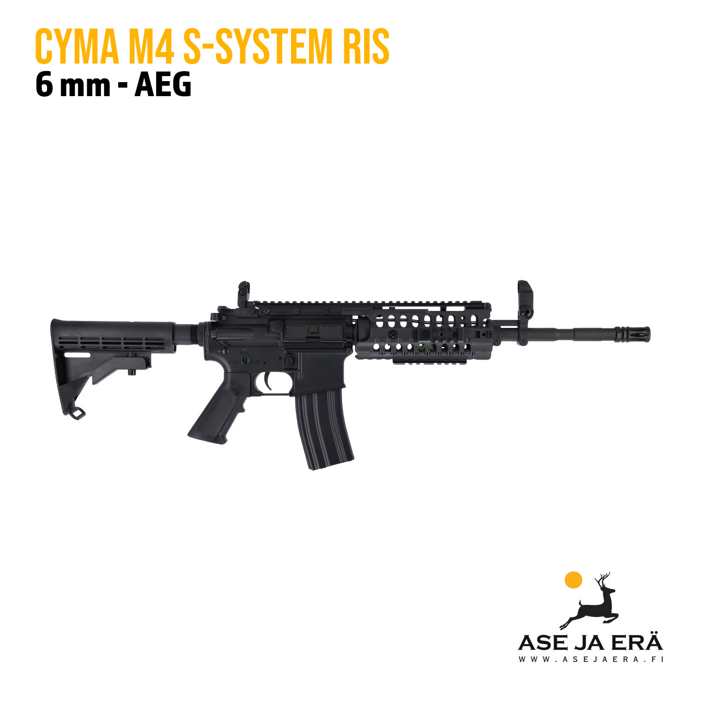 Cyma M4 S-System on kerta- ja sarjatulella varustettu airsoft-kivääri, joka sopii säädettävän takatukkinsa ansiosta myös nuoremmille ja lyhyemmille käyttäjille.