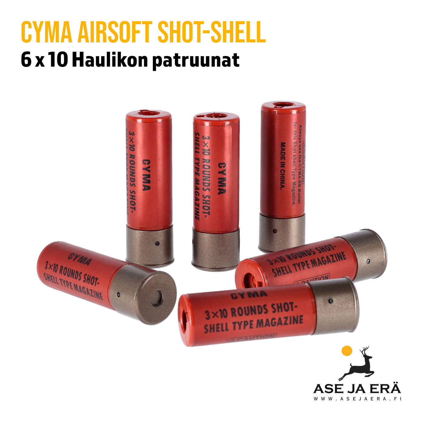 CYMA Shot-Shel haulikon hylsyjä (6 Kpl). Lippaat on haulikon hylsyjen näköiset jotka on yhteensopivia ASG ja Double Eagle airsoft- mallien kanssa.