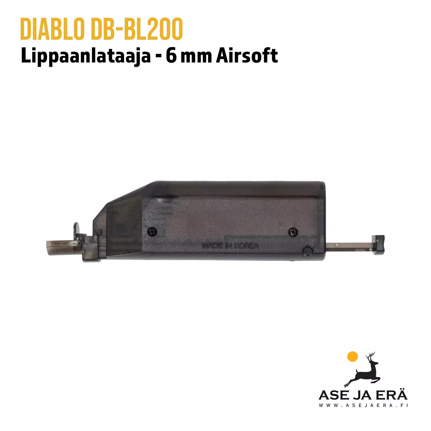 Diablo lippaanlataajaan mahtuu noin 200 kuulaa. Lataaja on muotoiltu käteen sopivaksi ja siitä saa erinomaisen otteen. Lataaja sopii lähes kaikkien lippaiden lataamiseen. Pakkaus sisältää lisäosan, jonka avulla voit ladata kuulat kaasuaseiden lippaisiin.