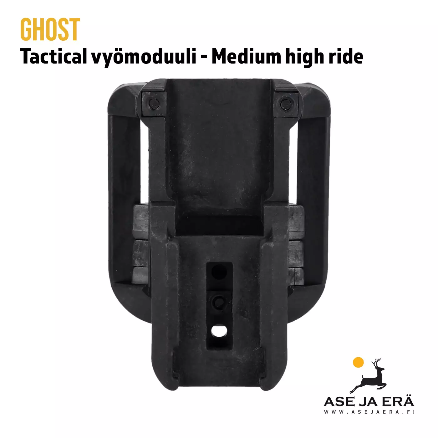 Ghost III Tactical holster pistoolikotelo peukalovarmistuksella. Ghosta Tactical Holster III peittää hylsynpoistoaukon ja soveltuu hyvin SRA-ammuntaan