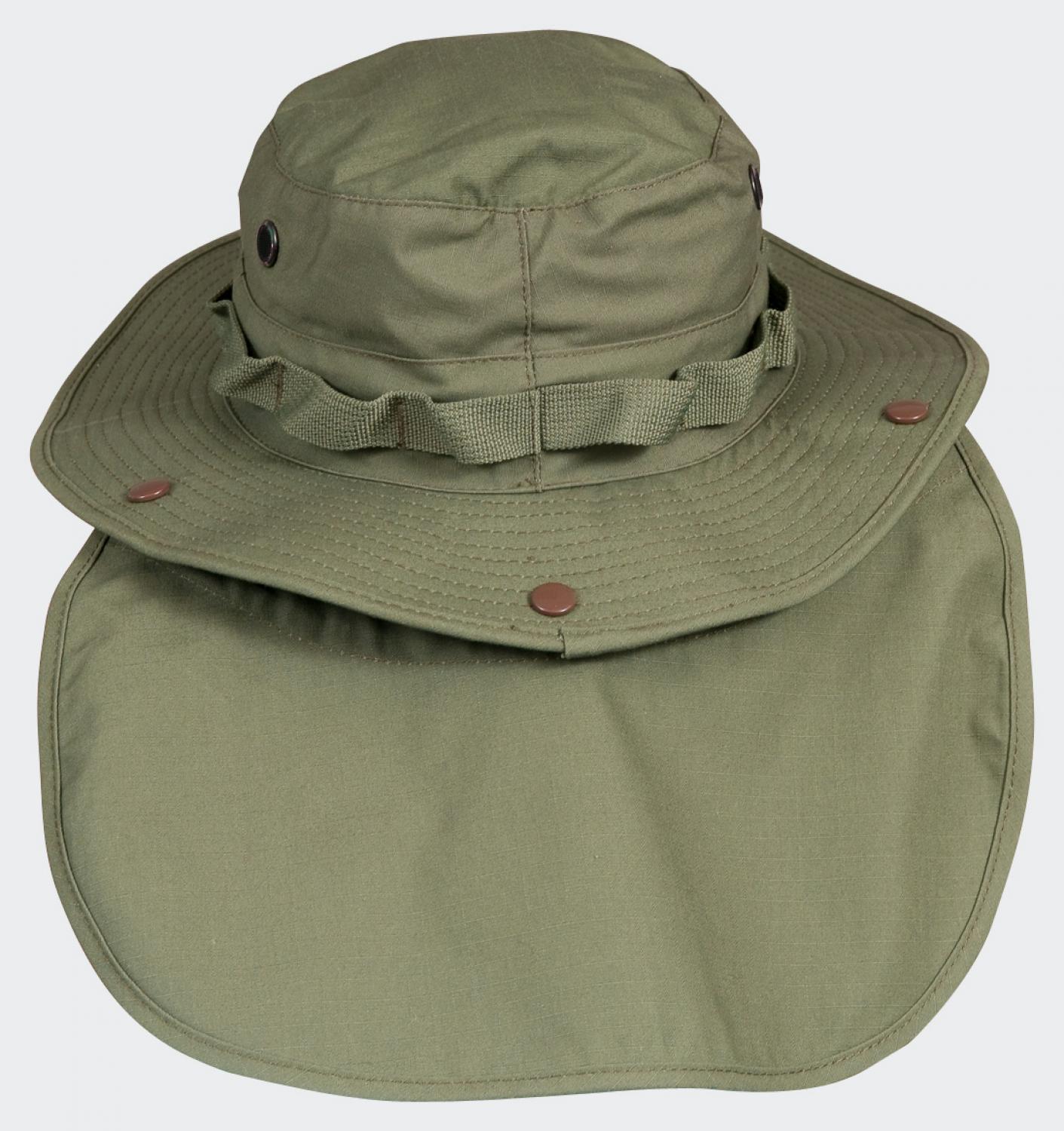 Helikon Bonnie Hattu Olive Green Helikonin Bonnie hattu tarjoaa tehokkaan suojan auringolta ja sateelta. Bonnie hatussa on irrottettava niskasuoja. Ominaisuudet: Hengittävä, neljä ilmanvaihto aukkoa Tehokas suoja auringolta ja sateelta Irrotettava niskasuojus Kokotaulukko: S - 55cm M - 57 cm L - 59 cm XL - 61 cm