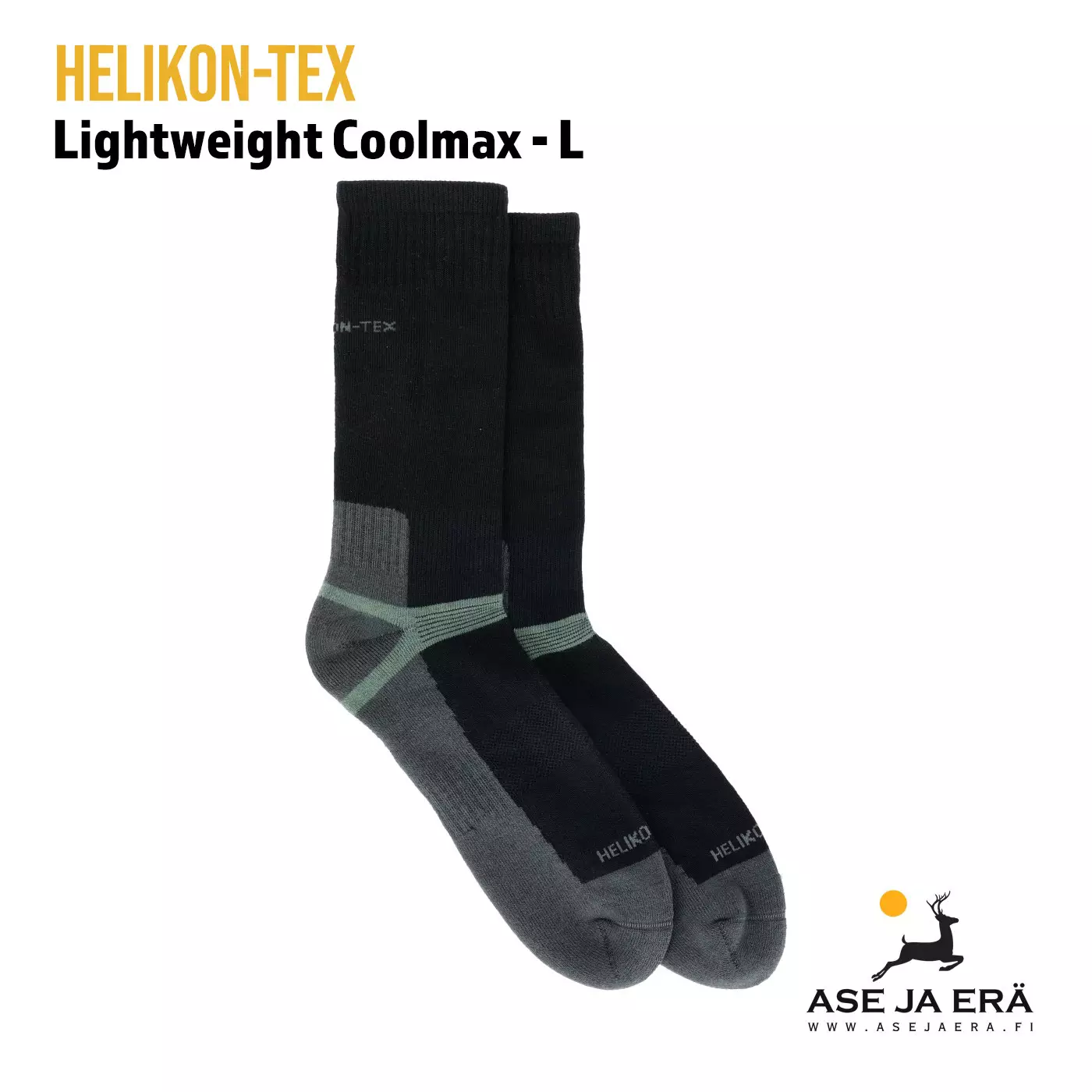 Helikon-Tex:in Lightweight ovat kevyet ja kestävät sukat kuumiin olosuhteisiin. Saumaton teknologia yhdistettynä anatomiseen tarttumisalueeseen sekä Coolmax teknologiaan takaa sukat jotka tarjoavat suojan hankauksilta.