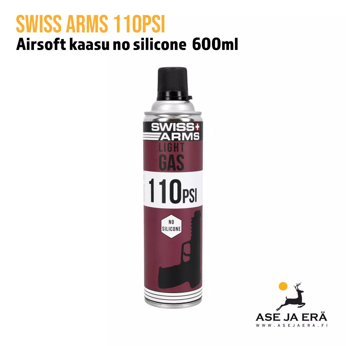 Swiss Arms 110 PSI airsoftkaasu on matalapaineinen, silikoniton kaasu GBB-airsoftaseille. Se on suunniteltu erityisesti muoviluistillisille pistooleille, joissa hallittu paine ja tasainen toimintasykli ovat keskeisiä käyttövarmuuden ja rakenteellisen kestävyyden kannalta.