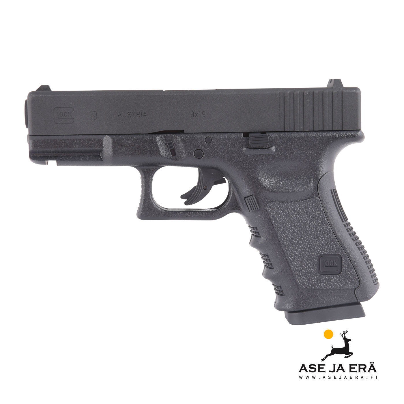 Ladataan tiedostolistaa...Umarex Glock 19 on laadukas ja erittäin aidon tuntoinen airsoft pistooli. Tämä Glock 17 pistoolin pikkuveli pakkaa reilusti potkua kompaktiin kokoon. Esikuvan tavoin aseesta löytyy metalliluisti, "Safe Action" liipasinvarmistin, sekä aidot lisensoidut logot ja merkinnät. Runko on yhdistelmä metallia ja kestävää polymeeriä.