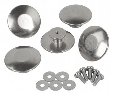 Viiden napin setti alumiinisia nappeja ampumatakkiin.