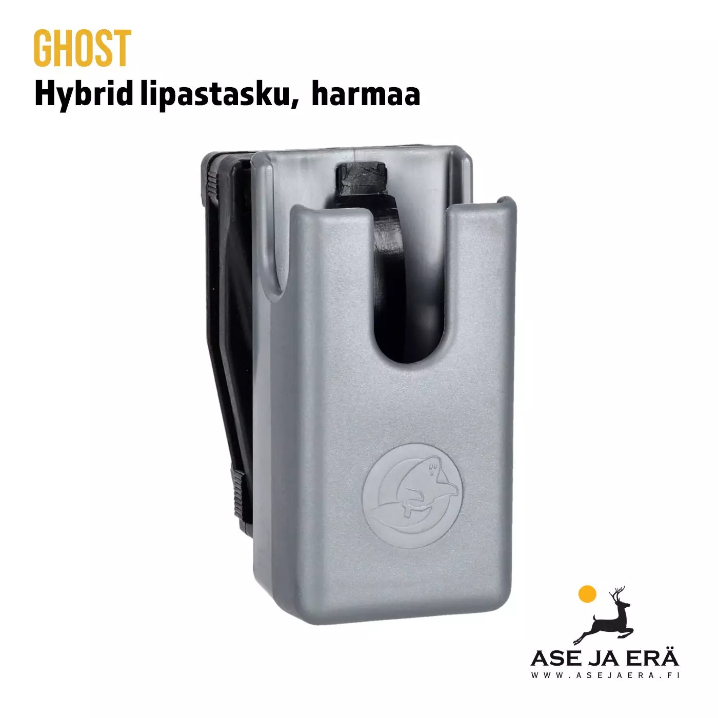 Ghost Hybrid on Ghostin valmistama kilpailu- ja harjoituskäyttöön suunniteltu lipastasku, jossa yhdistyvät nopea ulosveto ja säädettävä pito. Jousimekanismi ja kääntyvä speed clip tarjoavat joustavan kulmansäädön, ja tasku sopii useimmille kaksirivisille pistoolin lippaille sekä 40 mm leveille vöille. Väri harmaa. Myyntierä 1 kpl tai 3 kpl.