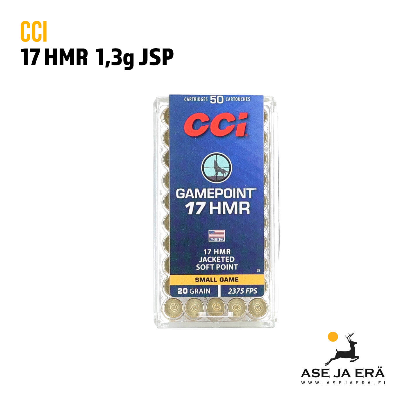 CCI® Gamepoint® 17HMR pienoiskiväärin patruunan Dimple Tip, eli minimalistinen kuoppa luodin kärjessä, erottaa sen muista pienriistan metsästyspatruunoista. Dimple Tipin ansiosta luoti laajenee ison luodin tavoin osuessaan, mikä takaa, että energiansiirto kohteeseen on tehokasta. Luodin rakenne myös minimoi liha- ja nahkavauriot, koska luoti laajenee hallitummin eikä sirpaloidu kuten varmint patruunat. Ja sen erinomaisen tarkkuuden ansiosta voit olla varma, että jokainen laukaus osuu kohteeseensa joka kerta!