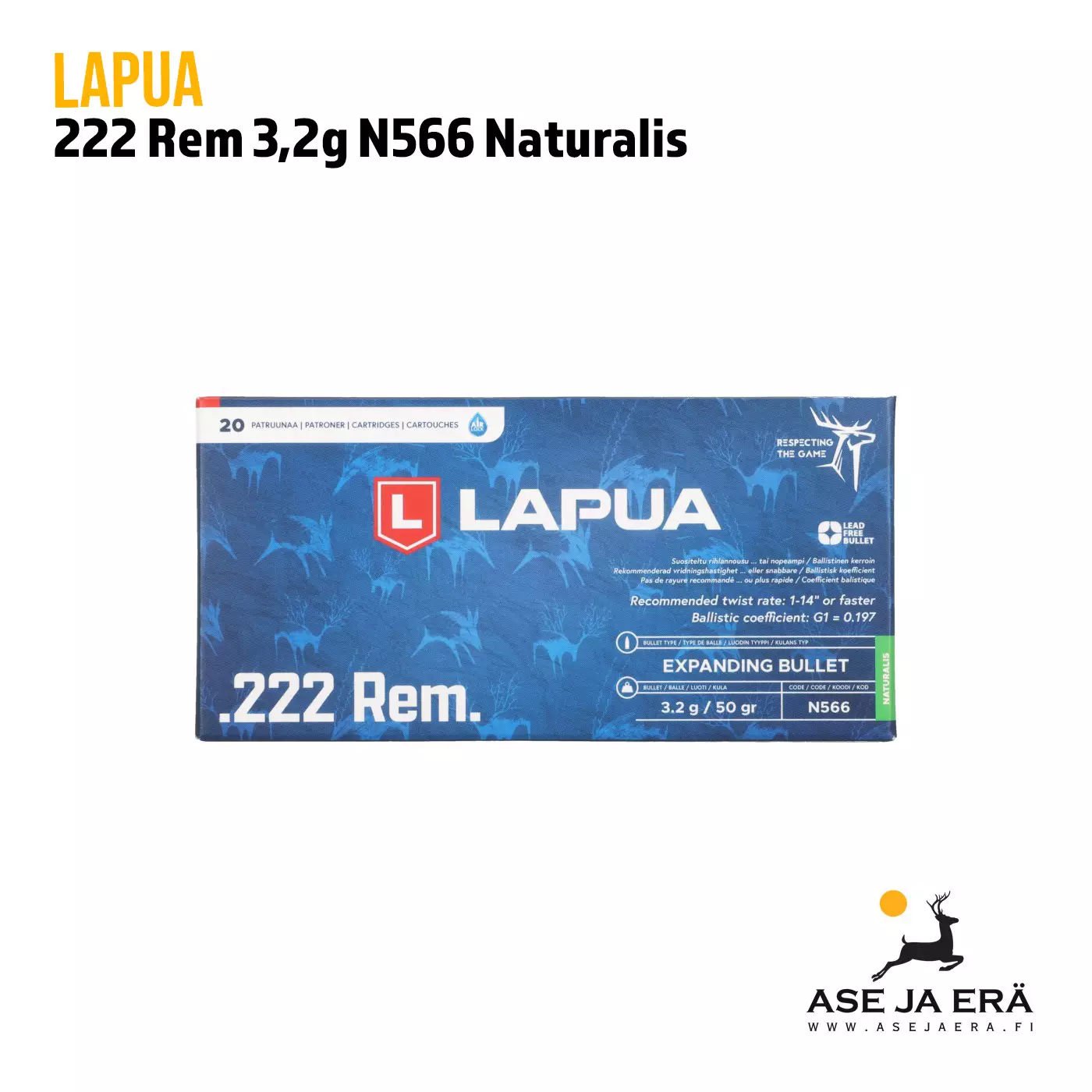 Kaliberi: .222 Rem tarjoaa erinomaisen tarkkuuden ja on suosittu valinta pienriistan ja varmien metsästyksessä. Luoti: Naturalis Solid - Lyijytön kupari takaa ympäristöystävällisyyden ja vähentää ympäristön saastumista metsästyksen jälkeen. Luodin paino: 3,2 g (50 gr) - Optimaalinen paino pienille ja keskikokoisille riistalle, kuten kauris ja kettu. Lähtönopeus: 965 m/s (3166 fps) tarjoaa nopean lähtönopeuden, joka parantaa tarkkuutta ja läpäisykykyä. Käyttötarkoitus: Metsästys - Erinomainen valinta sekä metsästysharjoitteluun että käytännön metsästykseen, erityisesti pienriistalle ja keskikokoiselle riistalle.