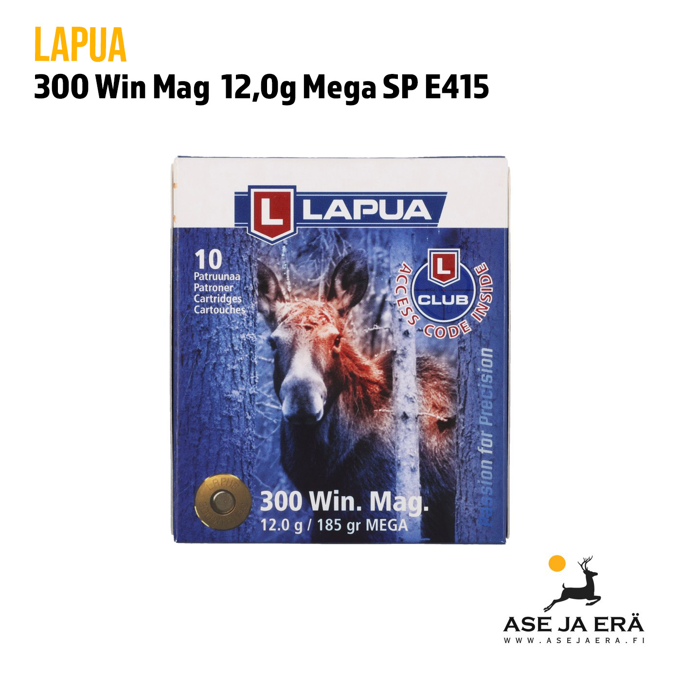 300 Win Mag Lapua 12g Mega kivääripatruuna on ladattu 185 grainisella SP Soft Point MEGA -luodilla. Tämä perinteinen luoti on ollut monien vuosien ajan käyttäjien suosikki sen luotettavuuden ja suorituskyvyn ansiosta.