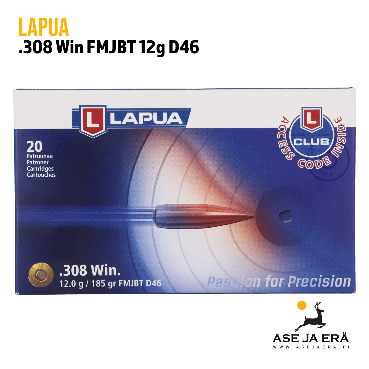 308 Lapua FMJBT D46 12g Kivääripatruuna