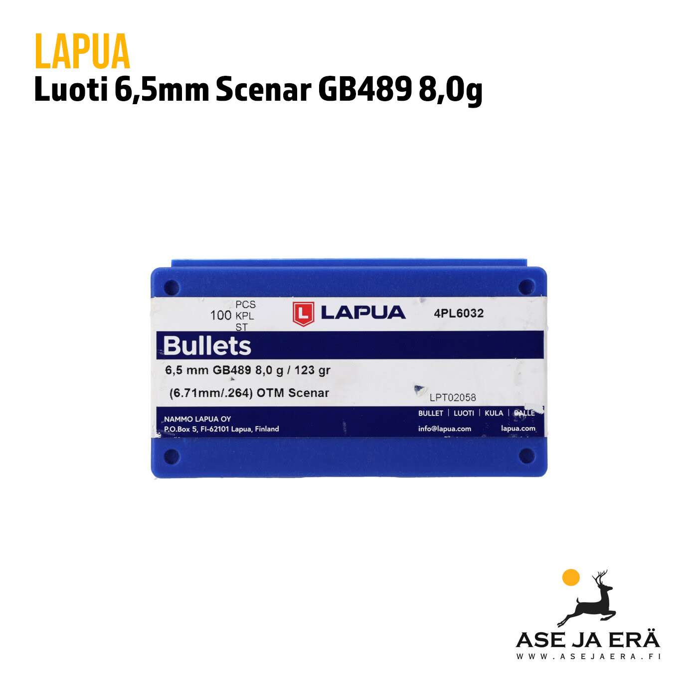 6,5mm Lapua GB489 Scenar on tunnettu ominaisuuksistaan. Lapuan Scenar on ykkösvalinta tarkkuusammuntaan myös pitkällä matkalla Luodin 8,0g paino ja huippuluokan materiaalit takaavat tasaisen lentoradan ja tarkan osuman. Valitse kotimainen Lapua-luoti ja koe ampumaharrastus uudella tasolla.