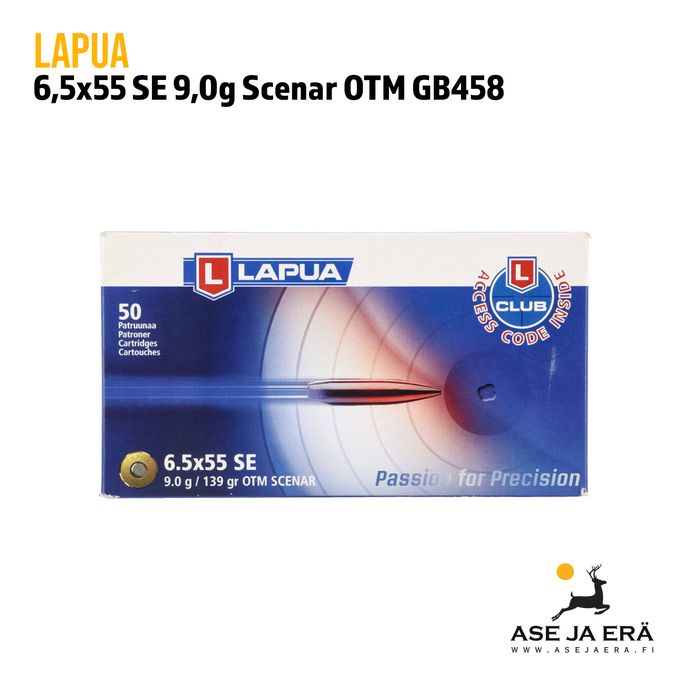 6,5x55 SE Lapua Scenar GB458 on tunnettu ominaisuuksistaan. Scenar OTM -luodit ovat tunnettuja erinomaisista tuloksista pitkillä matkoilla sekä kasa-ammunnassa Luodin 9g / 139gr paino ja huippuluokan materiaalit takaavat tasaisen lentoradan ja tarkan osuman. Valitse kotimainen Lapua-patruuna ja koe ampumaharrastus uudella tasolla.