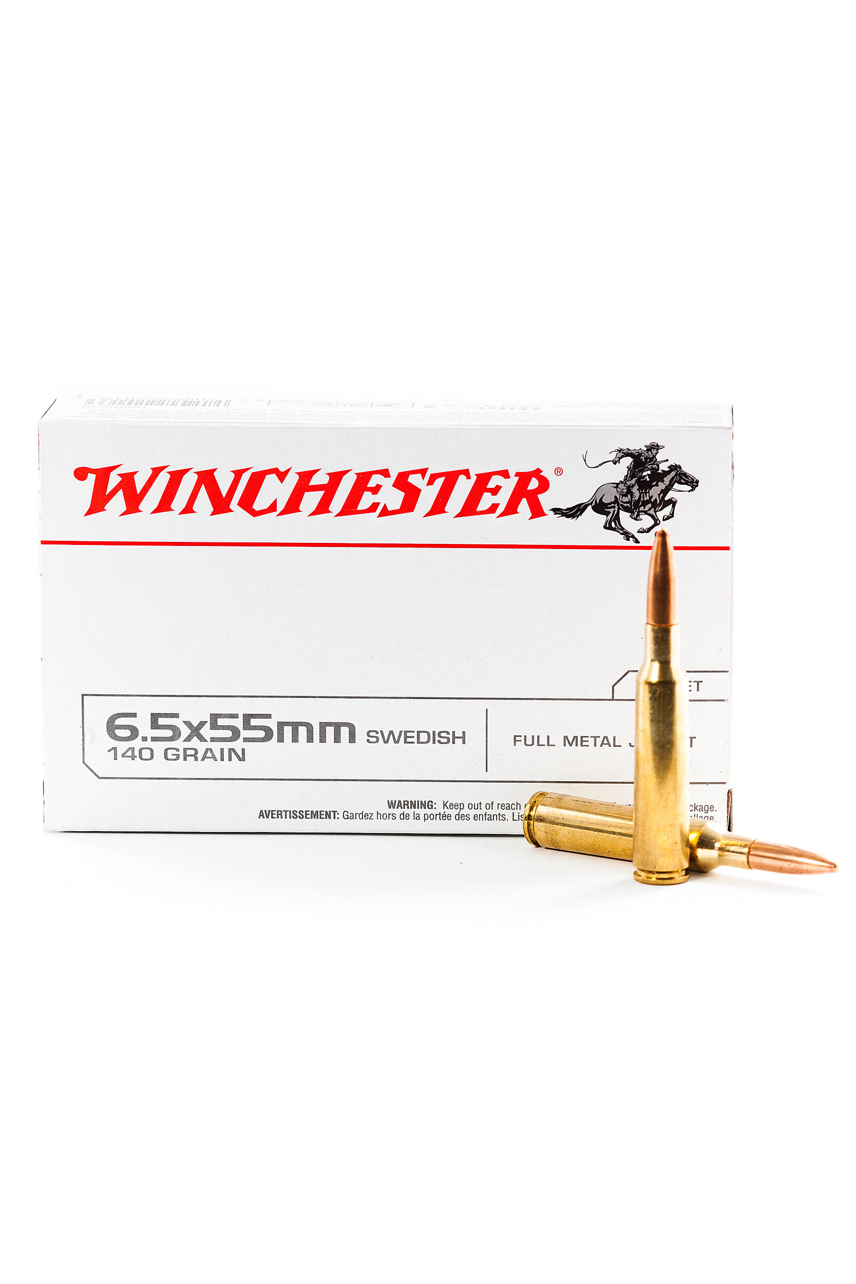 6,5x55 Winchester 9g FMJ Kaliiperi: 6,5mm Luodin paino ja tyyppi: 9g / 140grs, kokovaippa luoti FMJ Lähtönopeus: 777 m/s Rasiakoot: 20 ja 100