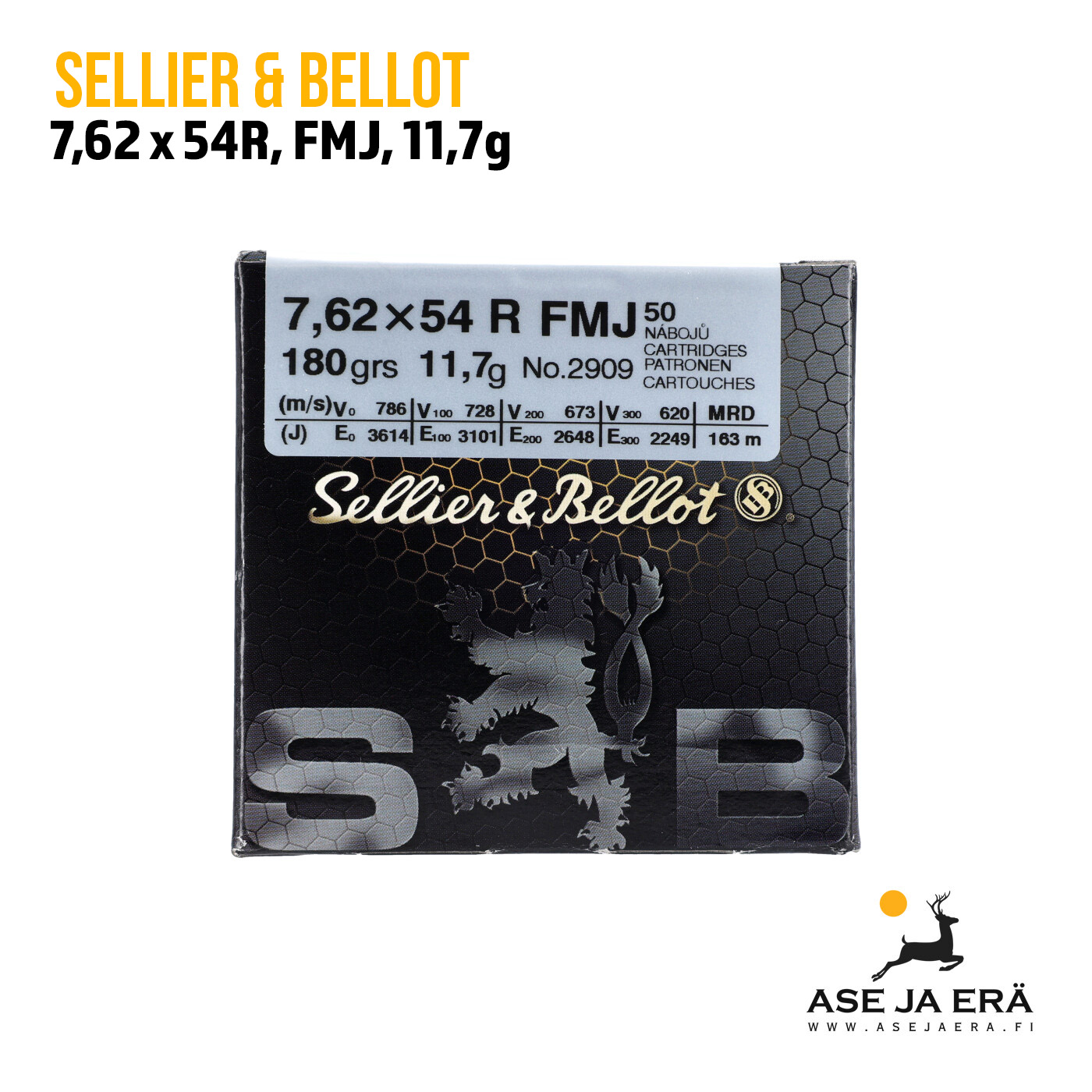 Luodin paino ja tyyppi: 11,7g / 180grs, kokovaippa luoti FMJ