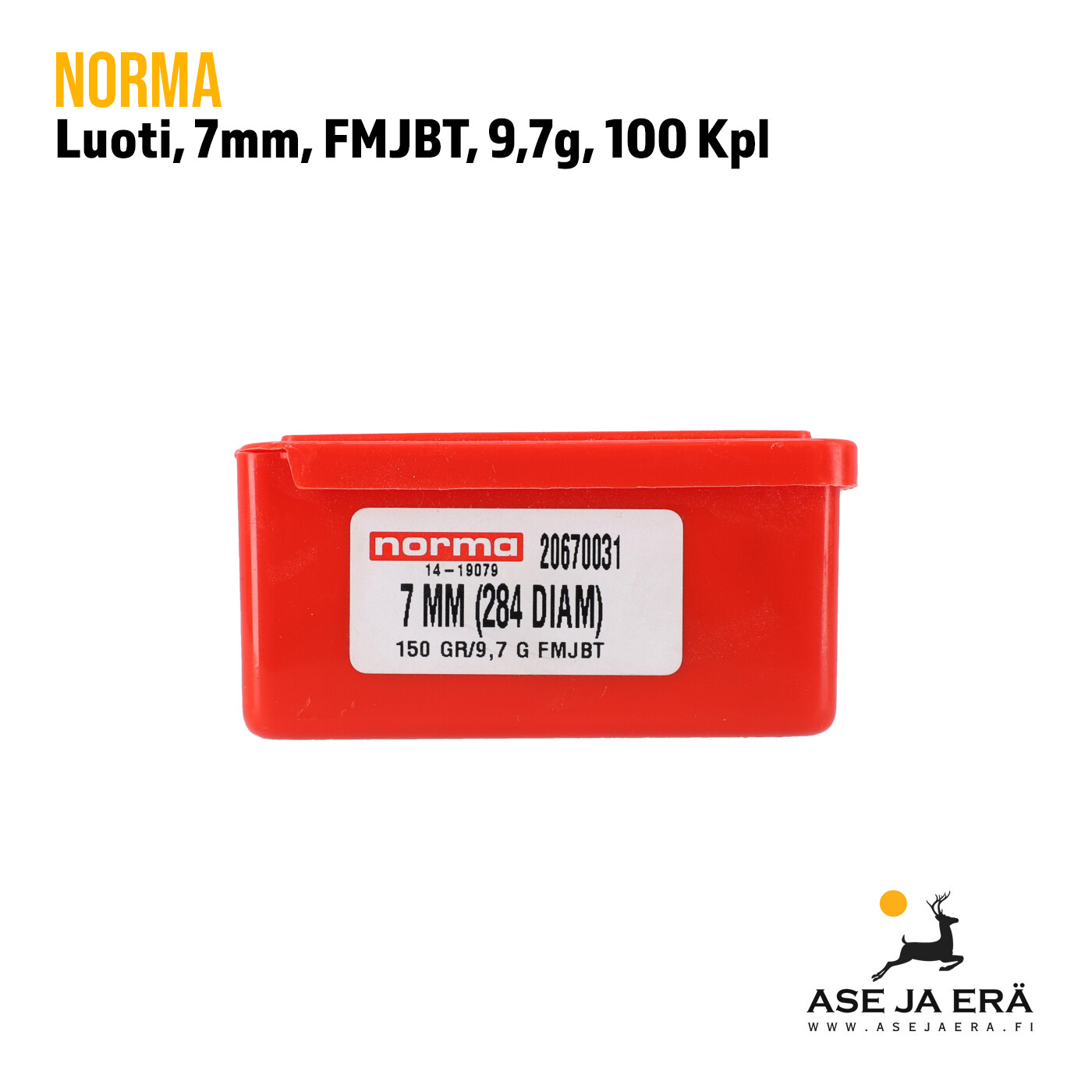 7mm (.284) 9,7g/150gr FMJ Norma luoti 100kpl Laadukas Norman 7mm 9,7g kokovaippa luoti jälleenlataukseen.