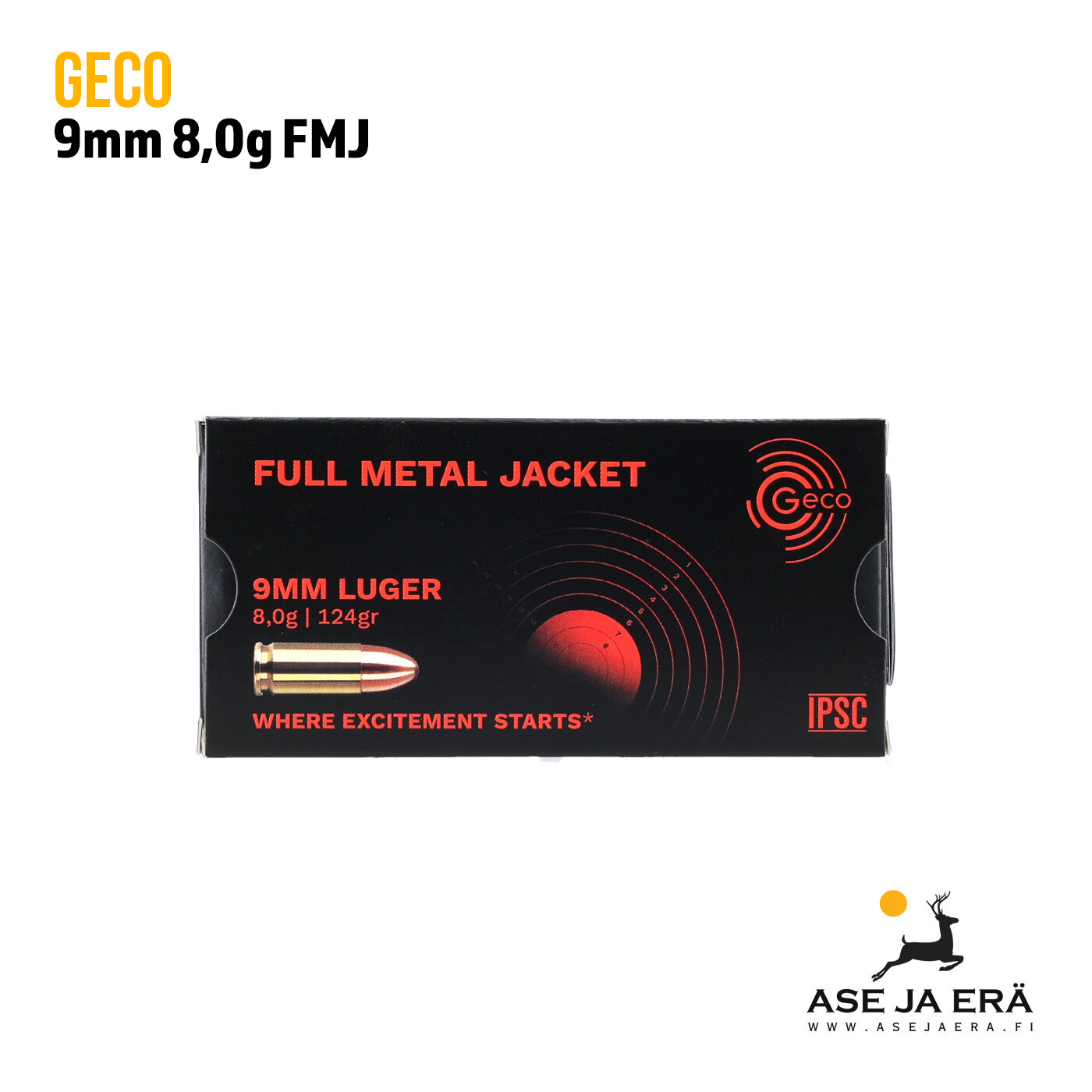 Geco 9mm Luger 8g FMJ on IPSC- ja harjoitusammuntaan tarkoitettu käsiasepatruuna.