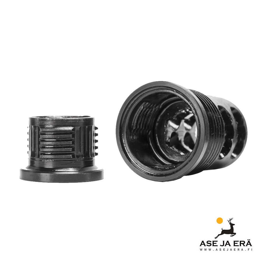 A-Tec A-Lock Mini adapteri menee suoraanM15x1 piippukierteeseen. A-Lock adapteri pikalukituksella Optima vaimentimille ja suujarruille, joissa M15X1 kierre. Adapterin ansiosta sama vaimennin käy usealle kierteelle ja kiinnittyy nopeasti ja vain 60 asteen käännöllä.