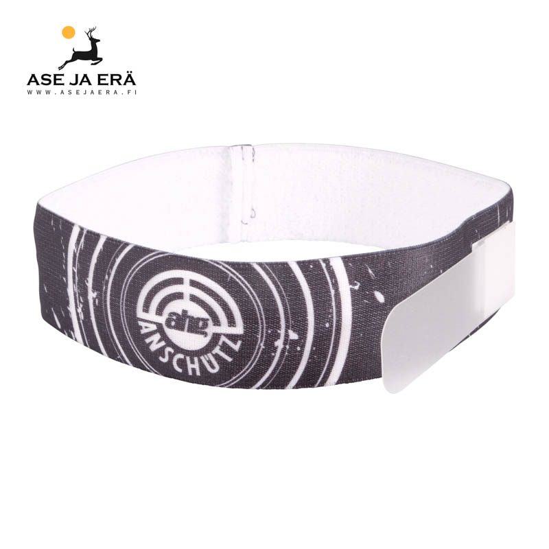 Musta-valkoinen AHG:n otsapanta silmälapulla, ISSF ja DSB sääntöjen mukainen.