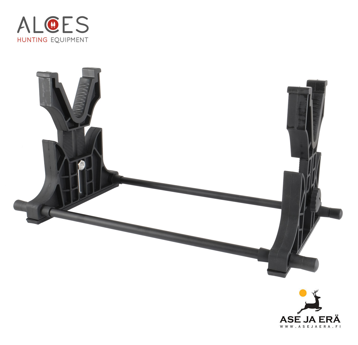 Alces aseen huoltoteline on erinomainen apuväline aseen puhdistukseen ja huoltoon. Telineen korkeus on sädäettävissä.