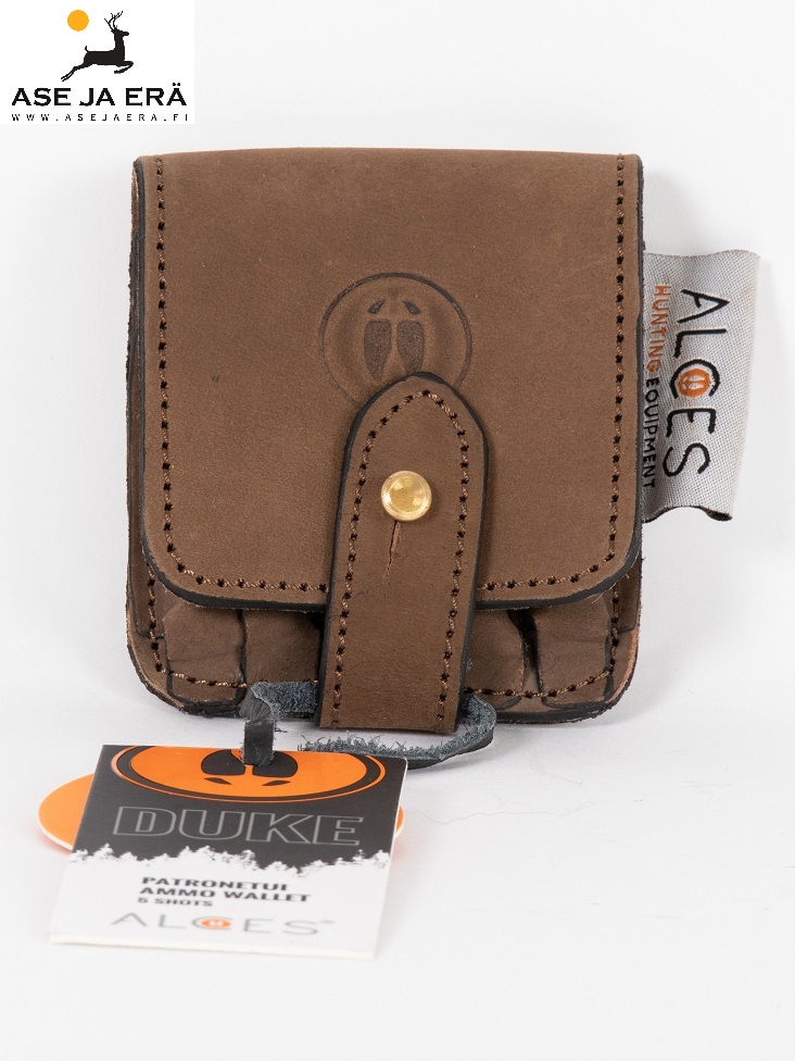 Alces Duke -patruunatasku on laadukas ruskeasta nahasta valmistettu patruunapidike 5 patruunalle.