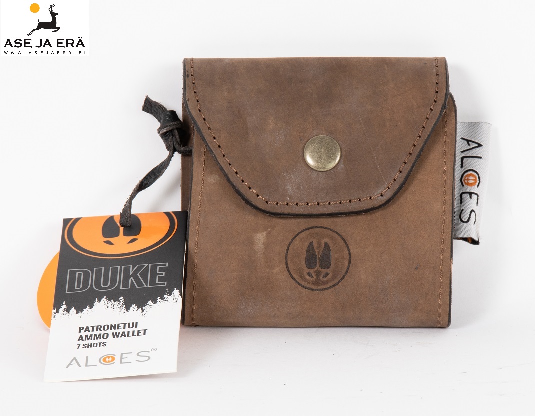 Alces Duke -patruunatasku on laadukas ruskeasta nahasta valmistettu patruunapidike. Patruunataskuun mahtuu seitsemän kivääripatruunaa. Soveltuu maksimissaa 90 mm pitkälle patruunalle.