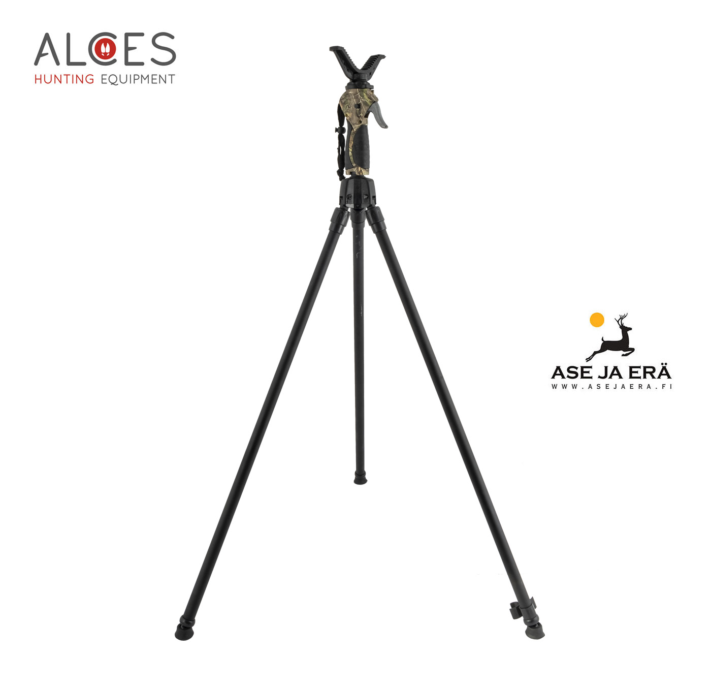 Alces Tripod ampumatuki on kolmijalkainen, pikakorkeudensäädöllä varustettu ampumatuki. Ampumatuen korkeus on säädettävissä välillä 102-165 cm. Ampumatuen jalkojen korkeutta säädetään liipaisinkahvalla, joka vapauttaa jalkojen lukituksen pudottaen nämä nopeasti ja äänettömästi.