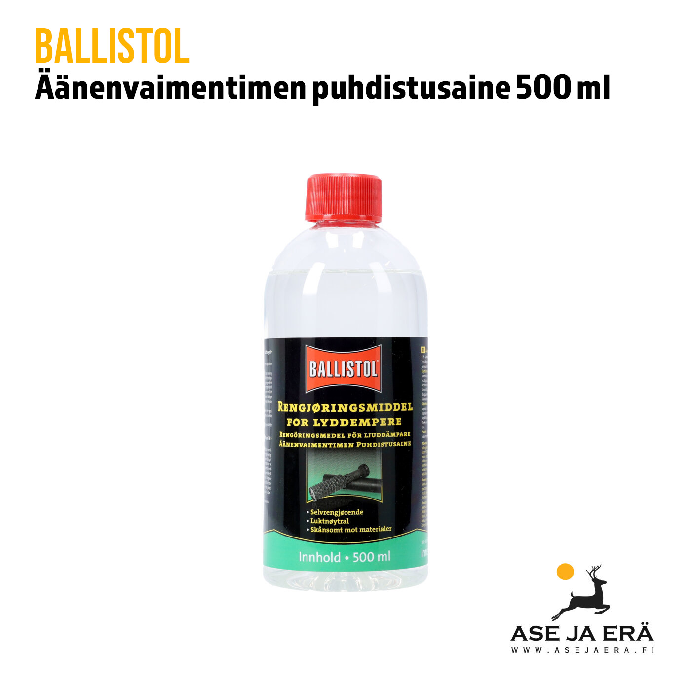 Ballistol Äänenvaimentimen Puhdistusaine on valmistettu korkealaatuisista ainesosista, eikä se vahingoita äänenvaimenninta.