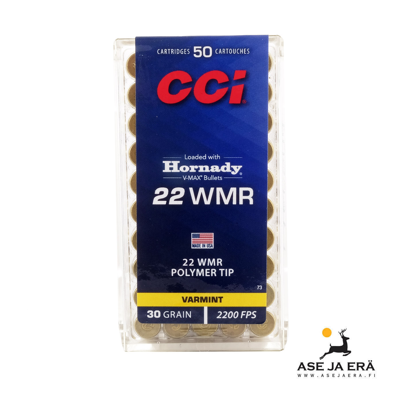 CCI 22 WMR V-Max 1,95g/30grs Kaliiperi: 22WMR Luodin paino ja tyyppi: 1,95g/30grs, V-max polymer tip Lähtönopeus: 670 m/s