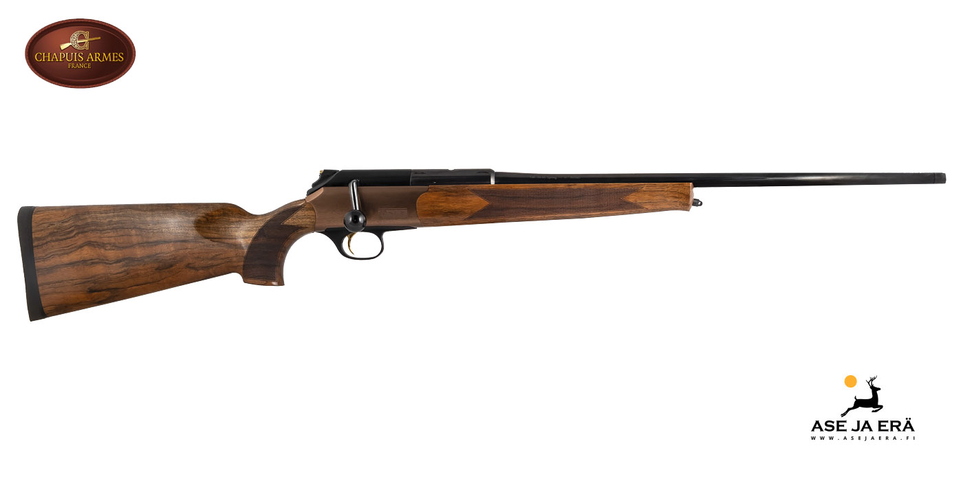 Chapuis Armes ROLS Classic -kivääri toimii käsiesi jatkeena. Tämä Classic-malli soveltuu kaikenlaiseen jahtiin, olitpa mukana kiihkeässä ajojahdissa tai rauhallisella hiippailuretkellä riistan perässä. Voit valita modernin kaivertamattoman kehyksen väriksi joko pronssin tai mustan. ROLS Classic -kiväärissä on pähkinäpuutukki ja sen lippaan kapasiteetti on 4 patruunaa. Ase on saatavana useissa kaliipereissa.