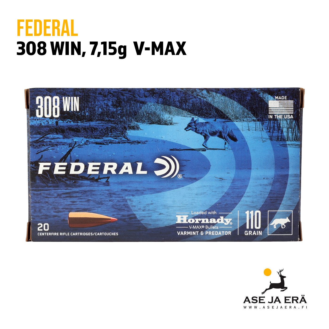 Federal 308 Win V-Max patruunan luoti aukeaa räjähtävän nopeasti ja varmasti, tehden siitä täydellisen valinnan jokaiselle pienpetojen metsästäjälle. Ammuitpa sitten lähietäisyydeltä tai kaukaa tämä patruuna varmistaa, että laukauksesi osuvat ja tehoavat kohteeseesi joka kerta. Patruunan laadukas suunnittelu ja valmistus tuottaa luotettavan maksimaalisen suorituskyvyn kaikissa olosuhteissa.