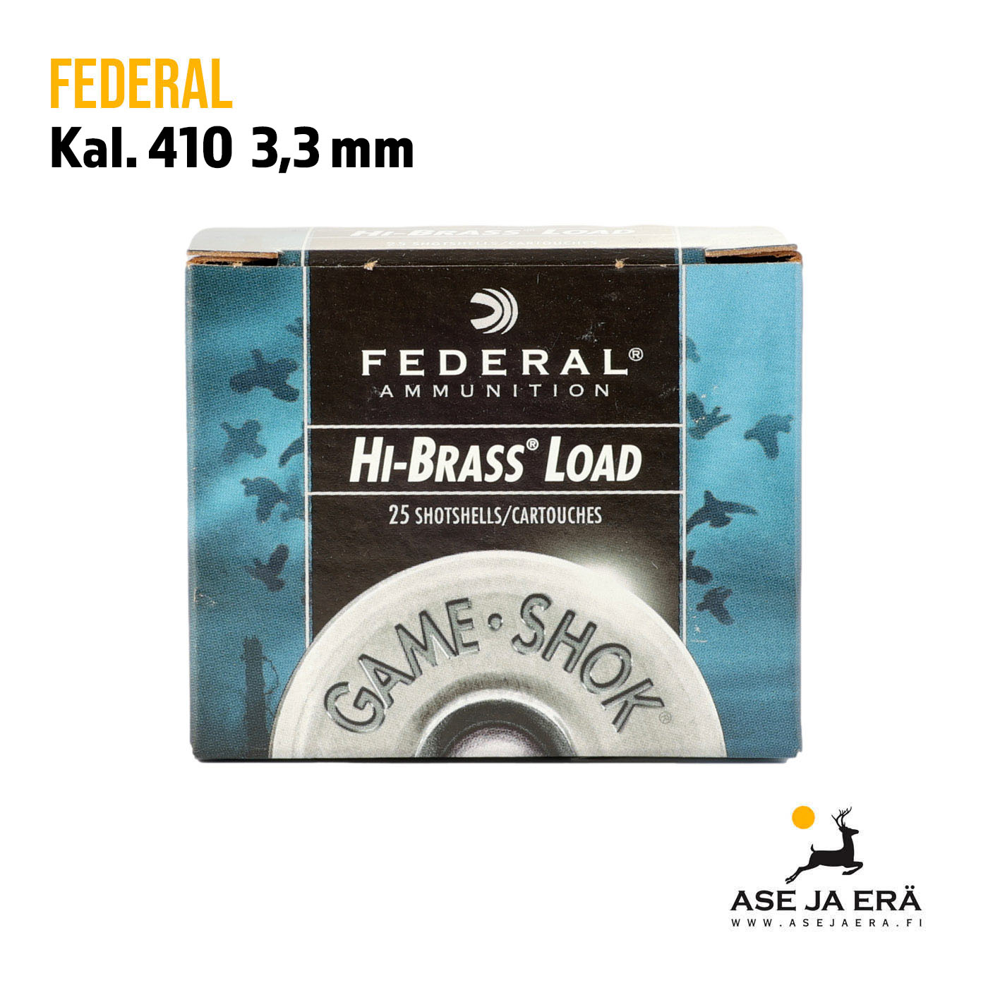Federal® on jo yli 100 vuoden ajan valmistanut korkealaatuisia patruunoita, joihin metsästäjät kaikkialla maailmassa luottavat. Heidän Hi-Brass Game Loads -latauksensa on suunniteltu tarjoamaan erinomaisen suorituskyvyn sekä metsäisissä että avoimissa kenttäympäristöissä. Patruunoissa on käytetty erityisesti valikoitua ruudin seosta sekä laadukasta nallia, joiden ansiosta luotettavuus on taattu. Huolellisesti ja tarkasti valmistetut pyöreät haulit on suunniteltu tuottamaan johdonmukaisia kuvioita, joissa on tiivis kuvio pidemmilläkin etäisyyksillä.