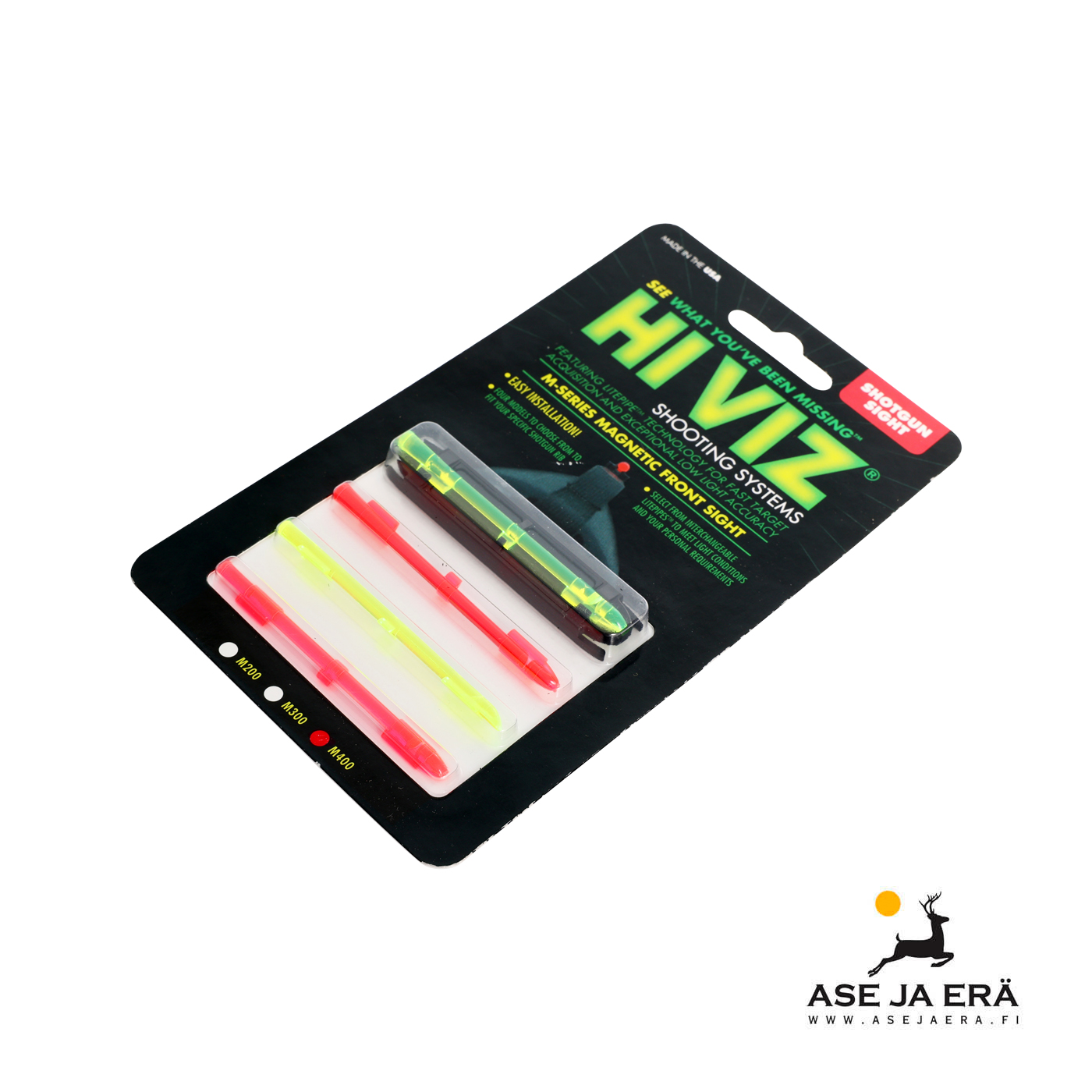 Hiviz loistejyväsarja M200 kiskonleveyksille 4.2 mm - 6.5 mm Magneettikiinnitteinen etutähtäin,4 vaihdettavaa valokuitua: 2 punaista (halkaisijat 3.5 mm ja 4.5 mm) ja 2 vihreää (halkaisijat 3.5 mm ja 4.5 mm). 4 eri mallia erilevyisiä tähtäinkiskoja varten: -M200 kiskonleveyksille 4.2 mm - 6.5 mm -M300 kiskonleveyksille 5.7 mm - 8.2 mm -M400 kiskonleveyksille 8.2 mm - 11.3 mm -M500 kiskonleveyksille 11.4 mm - 14.5 mm