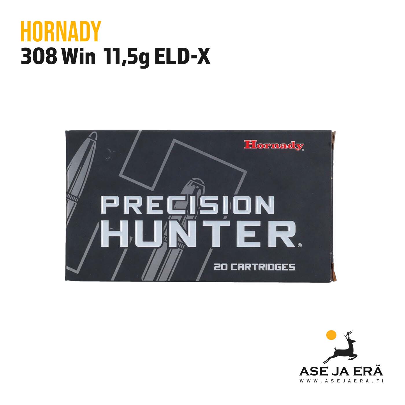 Hornady Precision Hunter® -ammukset ovat suunniteltu äärimmäinen tarkkuus silmällä pitäen. Hornadyn äärimmäisen tarkan valmistusprosessin sekä tunnetun laadunvalvonnan tuloksena on erittäin tasalaatuinen patruuna, joka tuottaa loistava tuloksia laukauksesta toiseen. Tässä patruunassa on käytetty Hornadyn ELD-X® luotia, jossa on yksi parhaista ballistisista kertoimista metsästysluodeissa.