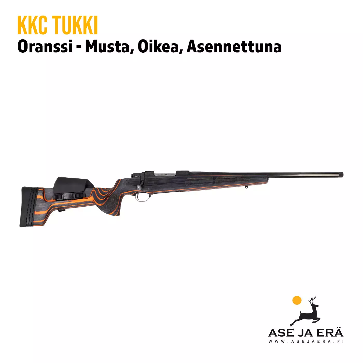 KKC Tukki oranssi musta on ensiluokkainen valinta ampumaurheiluun ja metsästykseen. Tämä täysin säädettävä laminaattitukki yhdistää toiminnallisuuden ja tyylin, ja se on erityisesti suunniteltu tarjoamaan maksimaalista mukavuutta ja hallittavuutta. Tukki on valmistettu laminoidusta koivusta, mikä tekee siitä vahvan, stabiilin ja kestävän. KKC:n innovatiivinen suunnittelu on Norjalaisen Kjetil Kverndokkin käsialaa, ja se on palkittu muotoilustaan. Tukki asennetaan ammattilaisen toimesta suoraan asiakkaan aseen rautoihin, mikä takaa täydellisen istuvuuden ja suorituskyvyn.