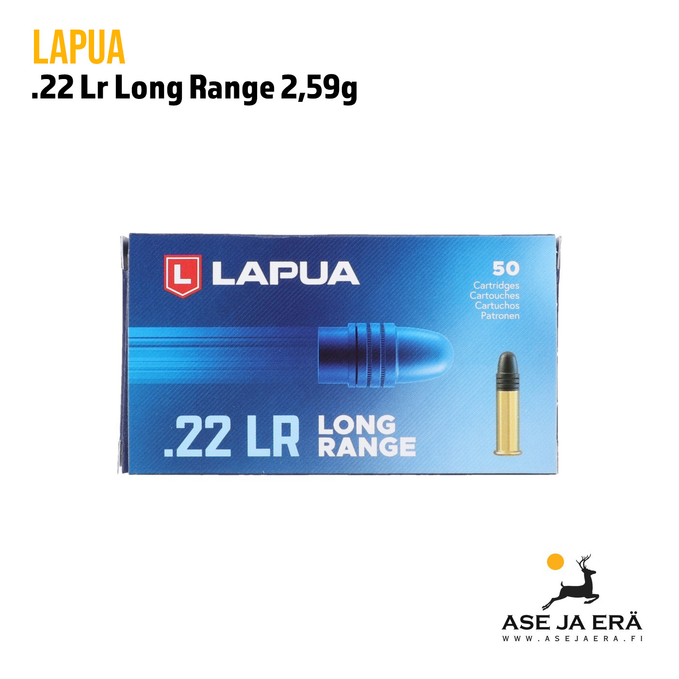 Lapua .22 LR Long Range 2,59 g pienoiskivääripatruuna on tulos laajasta tuotekehityksestä yhdistettynä maailman parhaaseen pienoiskiväärin patruunatuotantoon. Tämä patruuna on suunniteltu niille, jotka etsivät huipputason suorituskykyä pitkän matkan ammunnoissa .22 kaliiperin ammusten kanssa. Lapua Long Range -pienoiskivääripatruuna osoittaa erinomaista suorituskykyä 100 metrin ja sitä pidemmillä etäisyyksillä, mikä tekee siitä täydellisen valinnan Long Range, PRS, rimfire benchrest ja Field Target -lajeihin. Tasainen lentorata ja parannettu tuulikestävyys tarjoavat huippuluokan tarkkuutta kaikille huippuampujille.