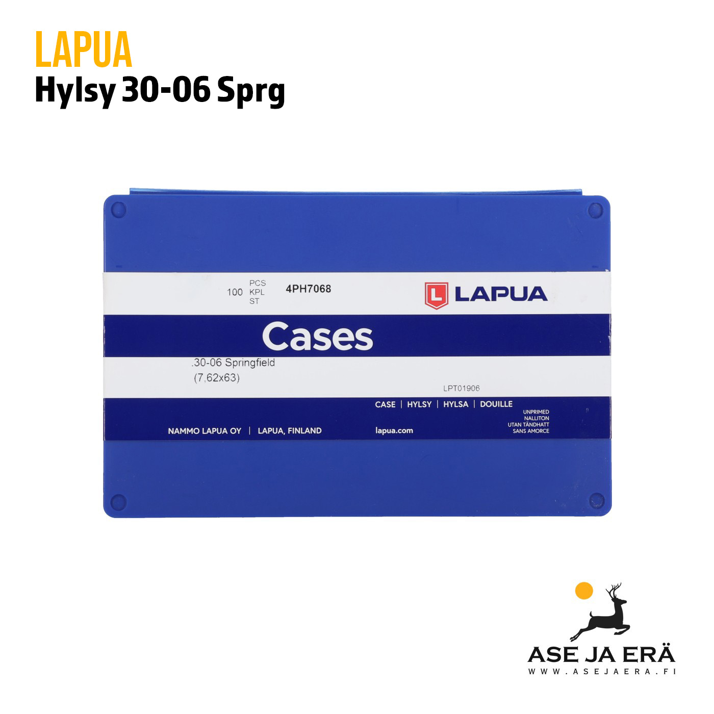 Lapua .30-06 Springfield hylsy on erinomainen valinta suurriistan metsästykseen sekä kiväärikilpailuihin keskipitkillä etäisyyksillä. Hylsy soveltuu isolle kiväärin nallille, mikä takaa optimaalisen sytytysvarmuuden.
