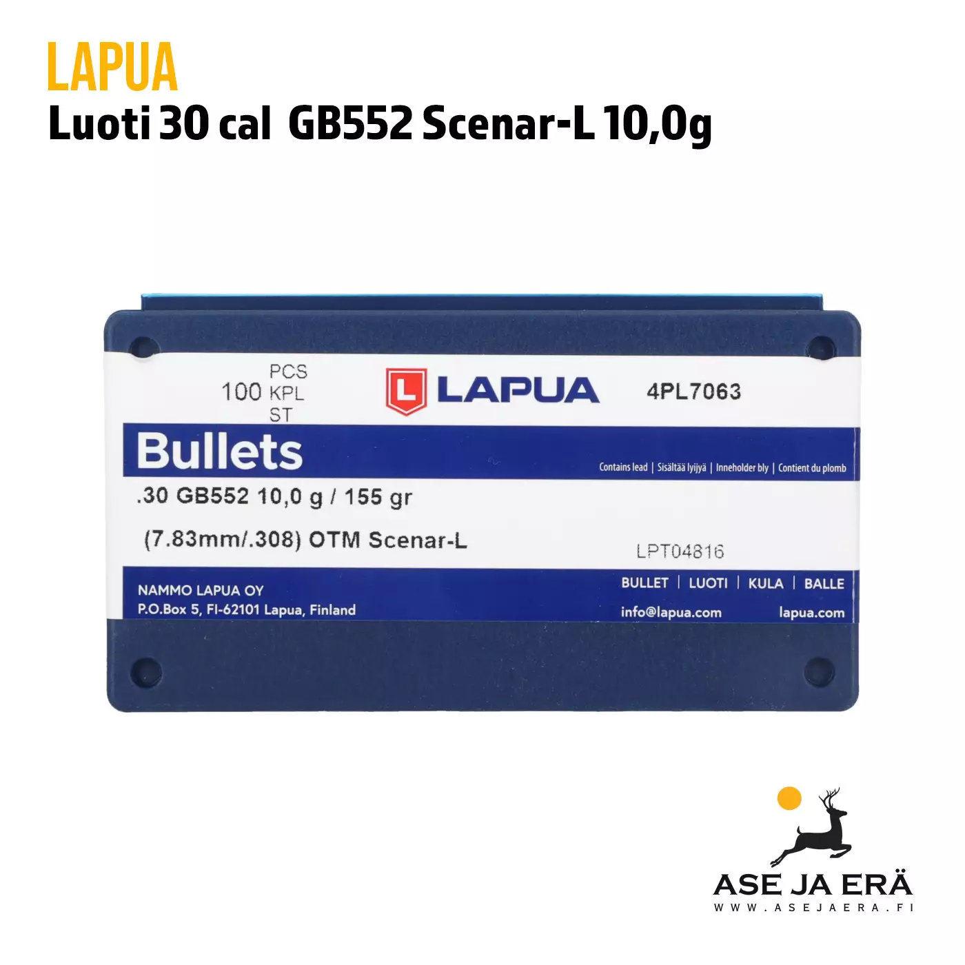 Lapua .30 GB552 10g Scenar-L -luoti pitkille etäisyyksille. Scenar-L -sarjan luodit ovat tarkkoja ja laadukkaita.