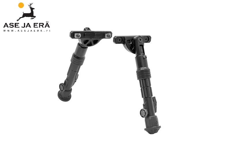Recon Flex bipod -jalat kiinnittyvät suoraan M-LOK -etutukkiin kello 3 ja 9 -asennoissa. Jaloissa on 5 posi-lock -asentoa käytettäväksi erilaisissa aseissa. Jalat on varustettu liukumattomilla kumijaloilla.