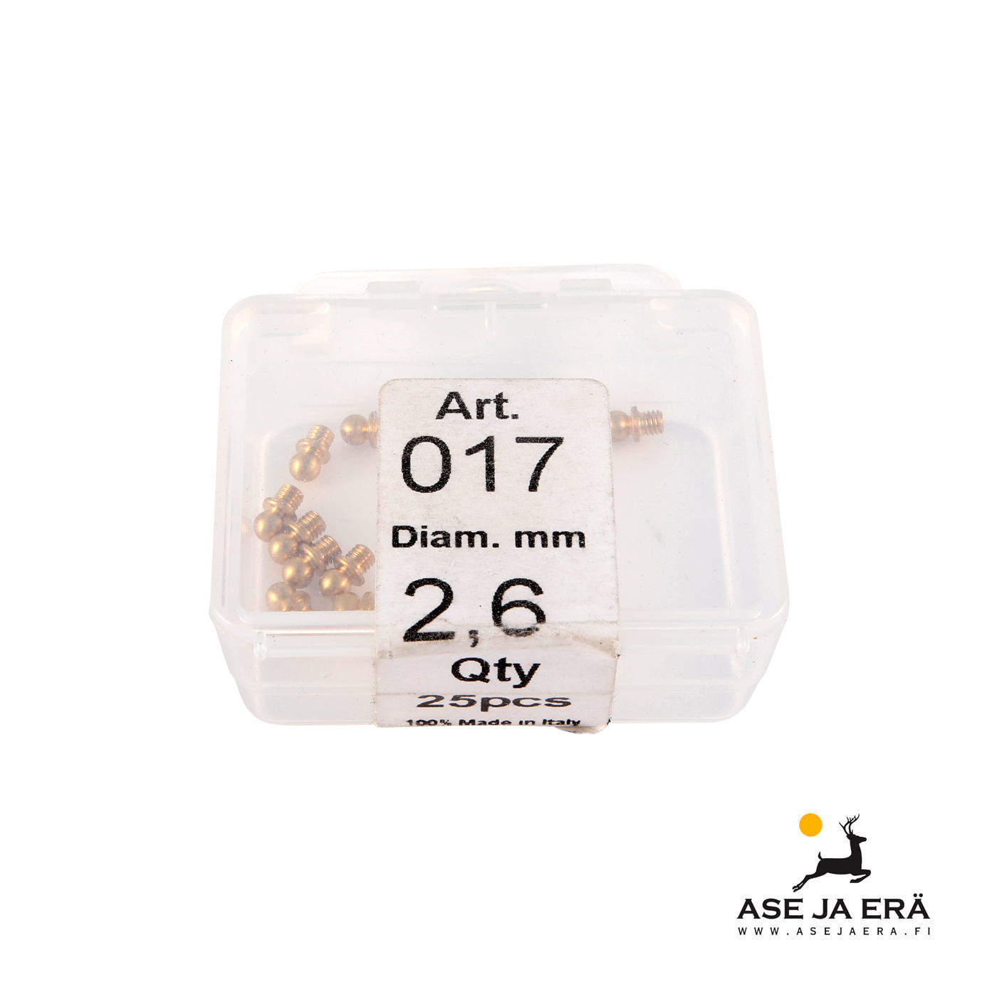 Messinkitähtäin jyvä 017 on laadukas ja kestävä messinkinen tähtäinjyvä, joka on suunniteltu erityisesti haulikoihin. Kolmen eri halkaisijavaihtoehdon (2,6 mm, 3 mm, 3,5 mm) ansiosta voit valita parhaiten omaan tarpeeseesi sopivan jyvän.