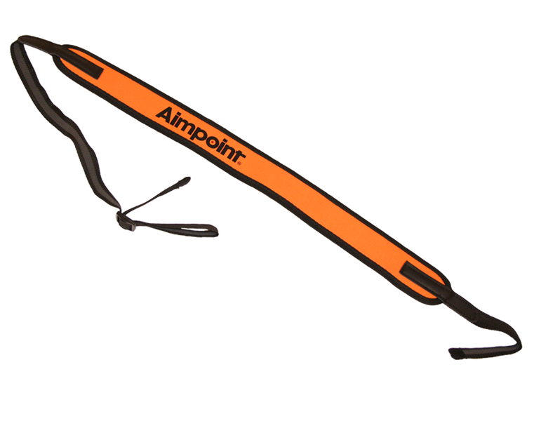 Aimpointin logolla varustettu neopreeninen asehihna.