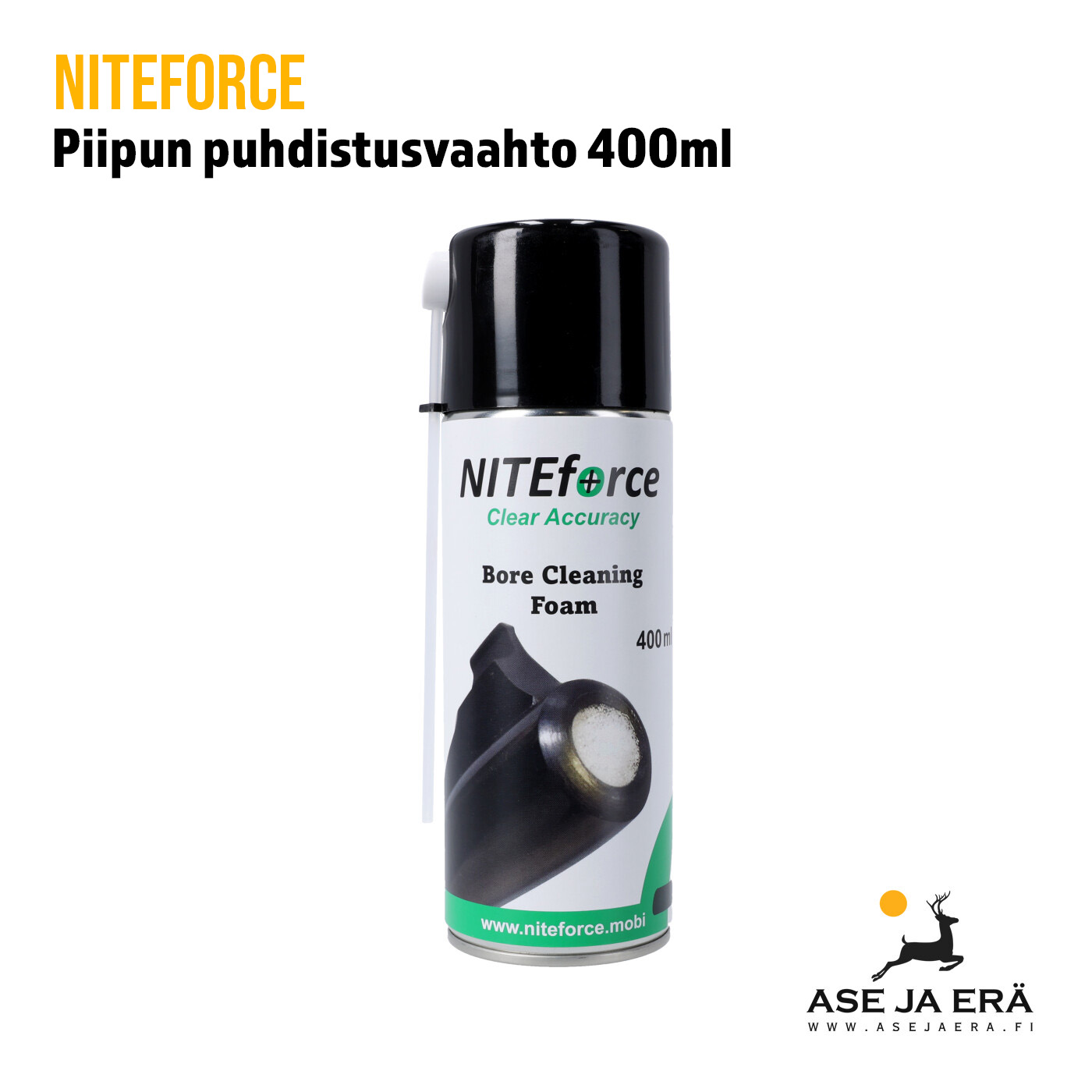Piipun puhdistusvaahto 400ml Niteforce on itsestään laajeneva ja tiivis puhdistusvaahto, joka on suunniteltu tehokkaasti poistamaan kuparikerrostumat ja jäämät aseiden piipuista.