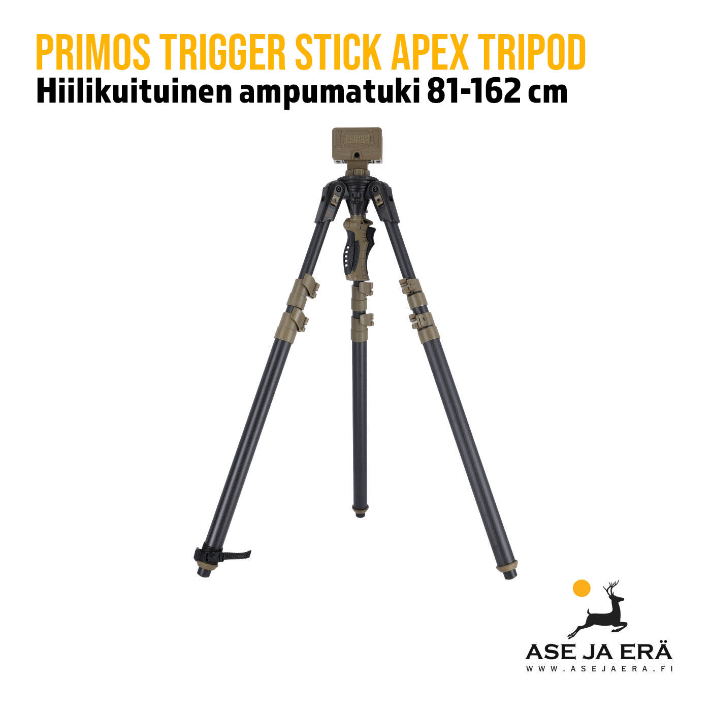 Primos Trigger Stick APEX TriPod Carbon on kolmijalkainen säädettävä ampumatuki, johon voit kiinnittää aseen lisäksi varsijousen, optiikkaa tai kameran.