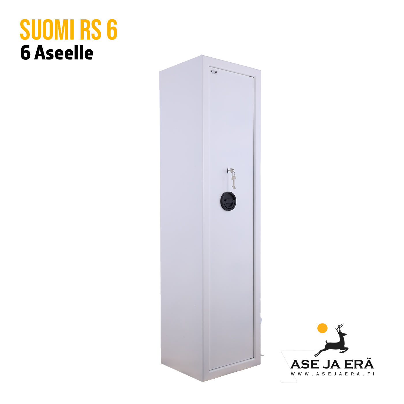 Suomi RS6 asekaappi on vahvasta 3mm teräksestä valmistettu enintään 6 aseen säilytykseen soveltuva hyväksytty turvakaappi.