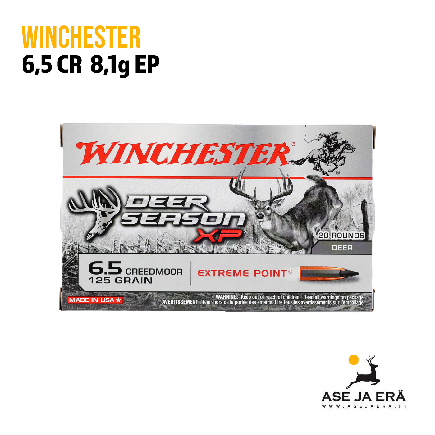Winchester Deer Season Extreme Pointilla on hienoja ominaisuuksia, kuten parannettu laajeneminen iskun yhteydessä ja luotettava terminaalitulos riistaeläimiin, kuten peuran tai kauriin kokoisiin riistaeläimiin jopa 500 metrin etäisyydelle! Se on myös valmistettu erittäin kovalla vaipalla, joka auttaa suojaamaan sirpaloitumiselta osuessa ja säilyttää samalla poikkeuksellisen hyvän painon, joten voit olla varma, että nämä patruunat tekevät tehtävänsä joka kerta!