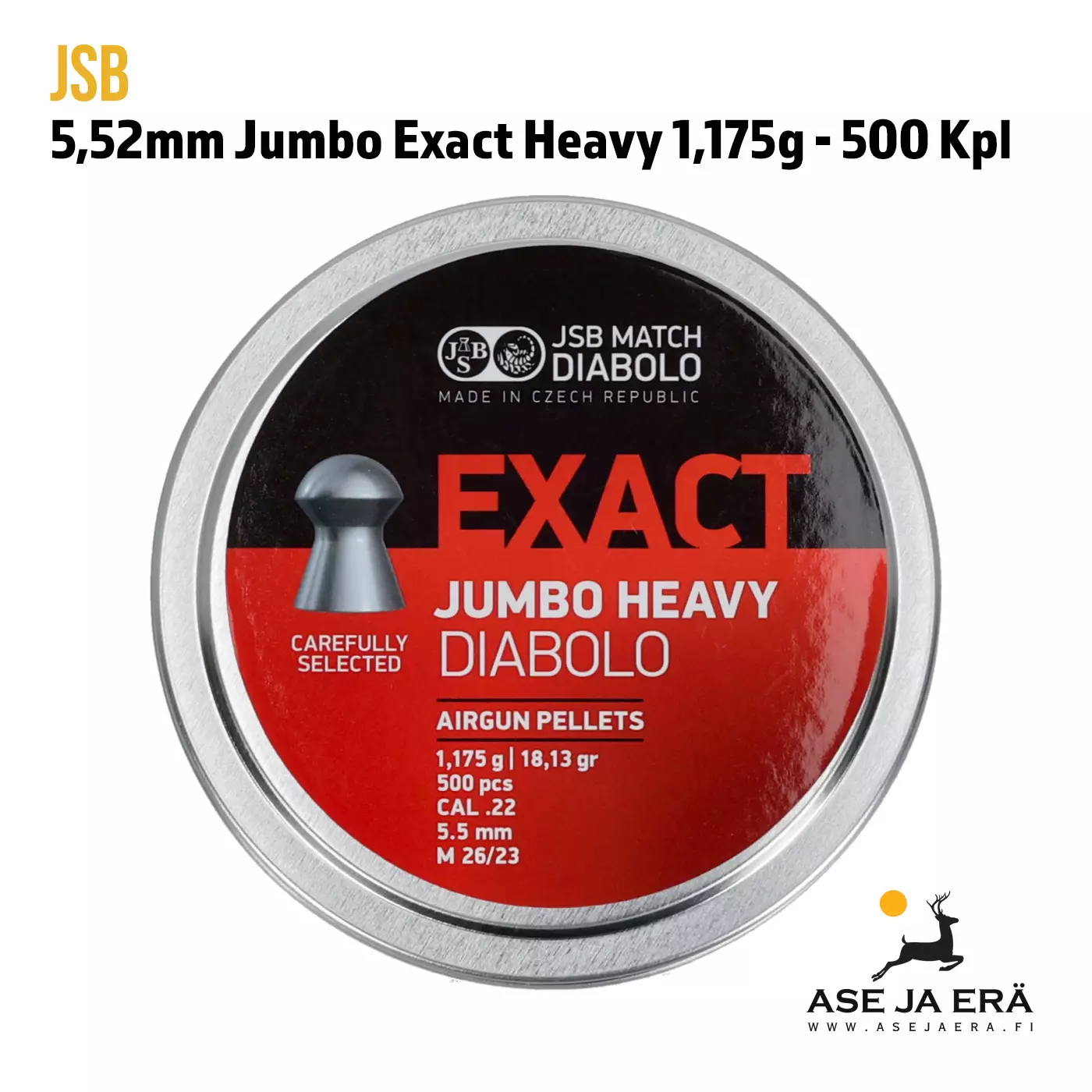 JSB Jumbo Exact Heavy 5,52 mm on suunniteltu ampujille, jotka etsivät raskaampaa ratkaisua tehokkaisiin ilmakivääreihin. Tämä luoti tarjoaa tavanomaista korkeamman painon (1,175 g), mikä parantaa erityisesti pitkän matkan tarkkuutta ja osumatiheyttä myös tuulisissa olosuhteissa. Erinomainen tasapaino ja aerodynaaminen muotoilu takaavat, että luoti lentää vakaasti ja hallitusti kauemmallakin matkalla ilman merkittävää poikkeamaa. Tiukasti valvottu JSB-laatu näkyy viimeistelyssä ja valmistuksen tasaisuudessa - jokainen luoti täyttää korkeimmat laatustandardit. Jumbo Exact Heavy on täydellinen valinta, kun tarvitset parasta mahdollista suorituskykyä .22-kaliiperisessa ilmakiväärissä, oli kyseessä sitten metsästys, kilpailut tai monipuolinen tarkkuusammunta.