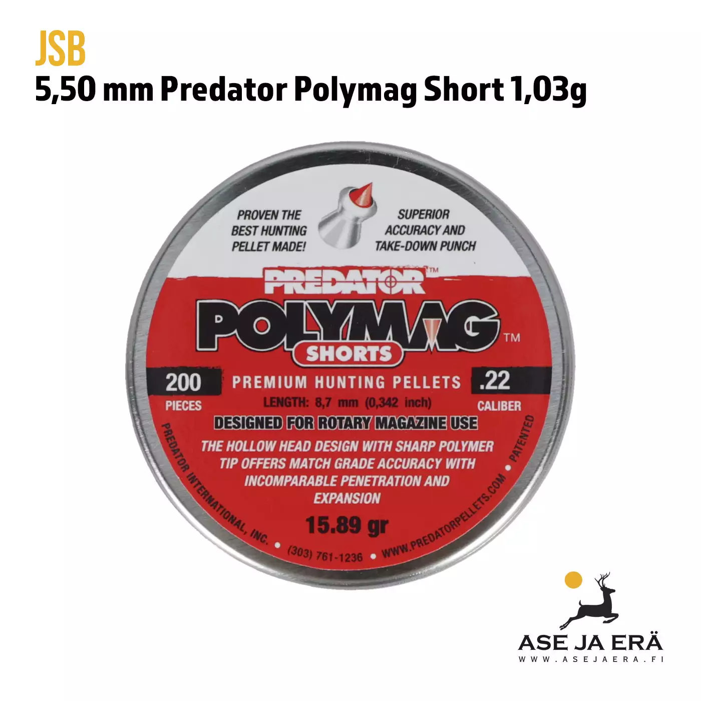 5,5mm JSB Predator Polymag Short ilma-ase luoti
