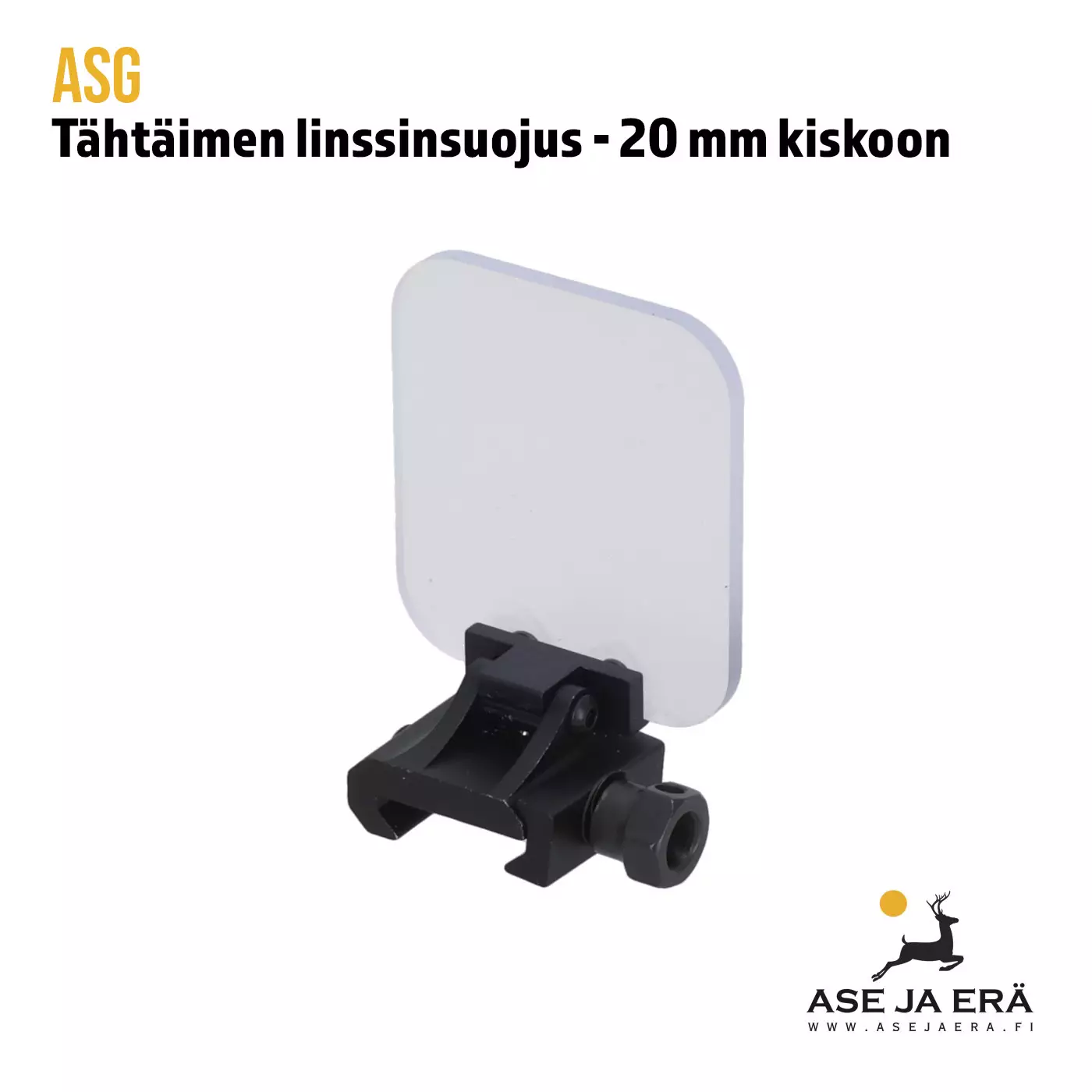 ASG tähtäimen linssinsuojus, joka kiinnitetään tähtäinkiskoon tähtäimen etupuolelle. Suojus estää tähtäintä rikkoutumasta suorasta kuulan osumasta ja suojaa myös linssiä maastossa liikuttaessa. ASG tähtäimen linssinsuojus on hyvä ja edullinen suoja tähtäimelle.