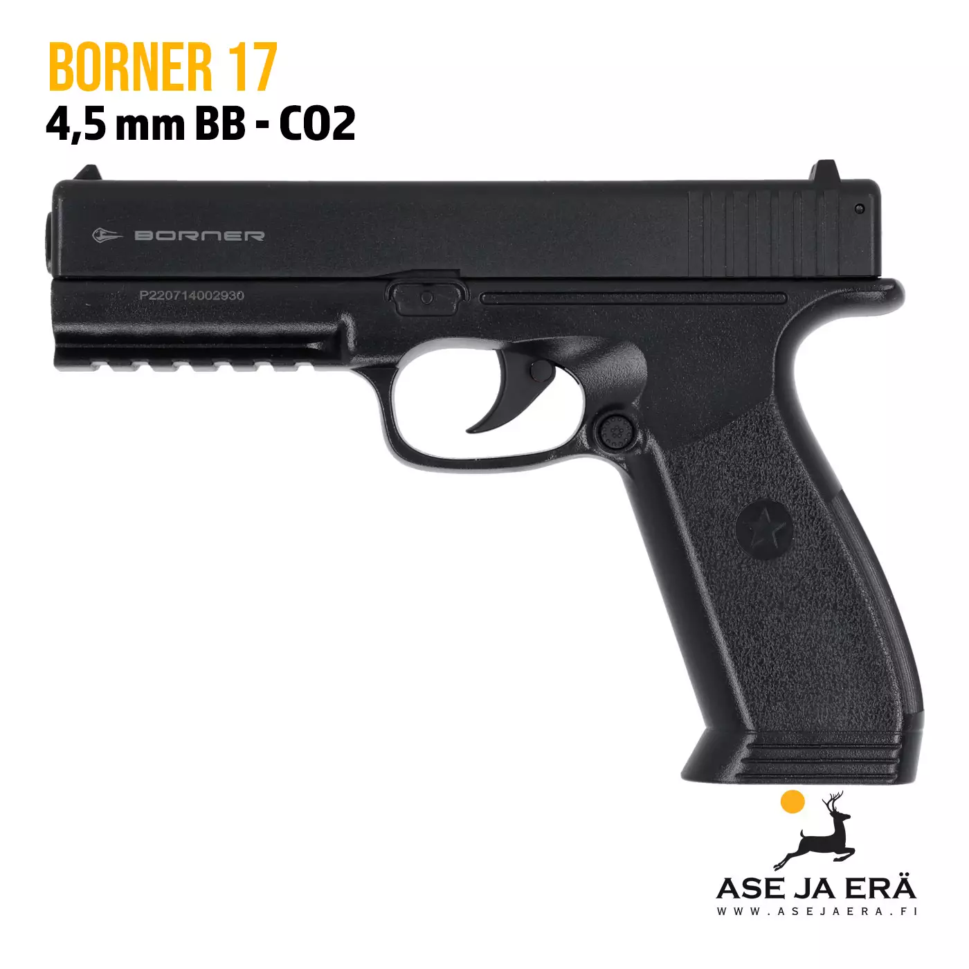 Borner 17 on saanut innoituksensa ikonisen Glock-pistoolin muotoilusta, yhdistäen klassisen ulkonäön ja modernin CO₂-teknologian tyylikkääksi harjoitusvälineeksi.