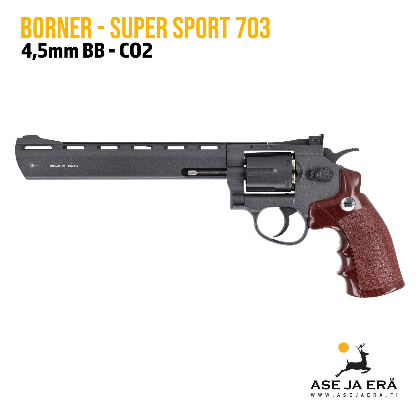 Borner Super Sport 703 on jämerä mutta edullinen ilma-ase joka soveltuu hyvin mm. tölkkiammuntaan ja on hyvä valinta niin aloittelijalle kuin jo kokeneemmalle ilma-aseharrastajalle.